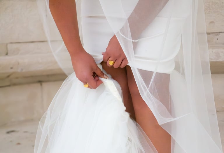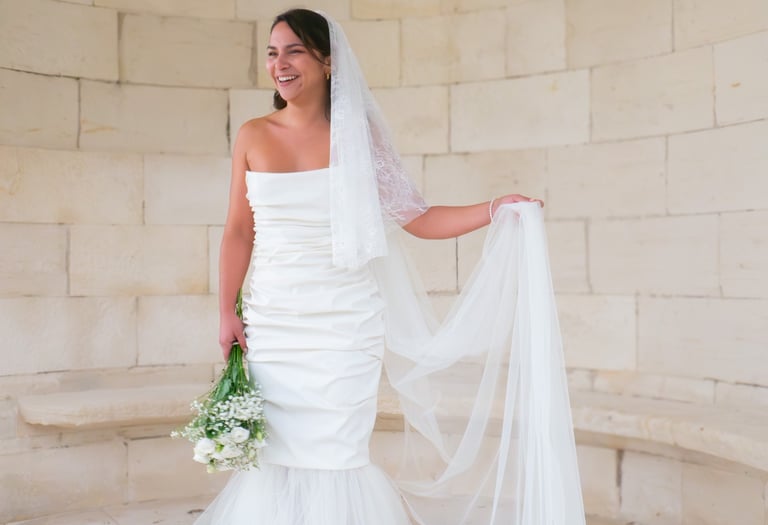 D’un simple geste, le tulle monté sur une bande à pression, se détache pour révéler une version plus sobre et contemporaine : la robe "Virginie". Une pièce idéale pour passer d’une cérémonie élégante à une soirée légère en un instant